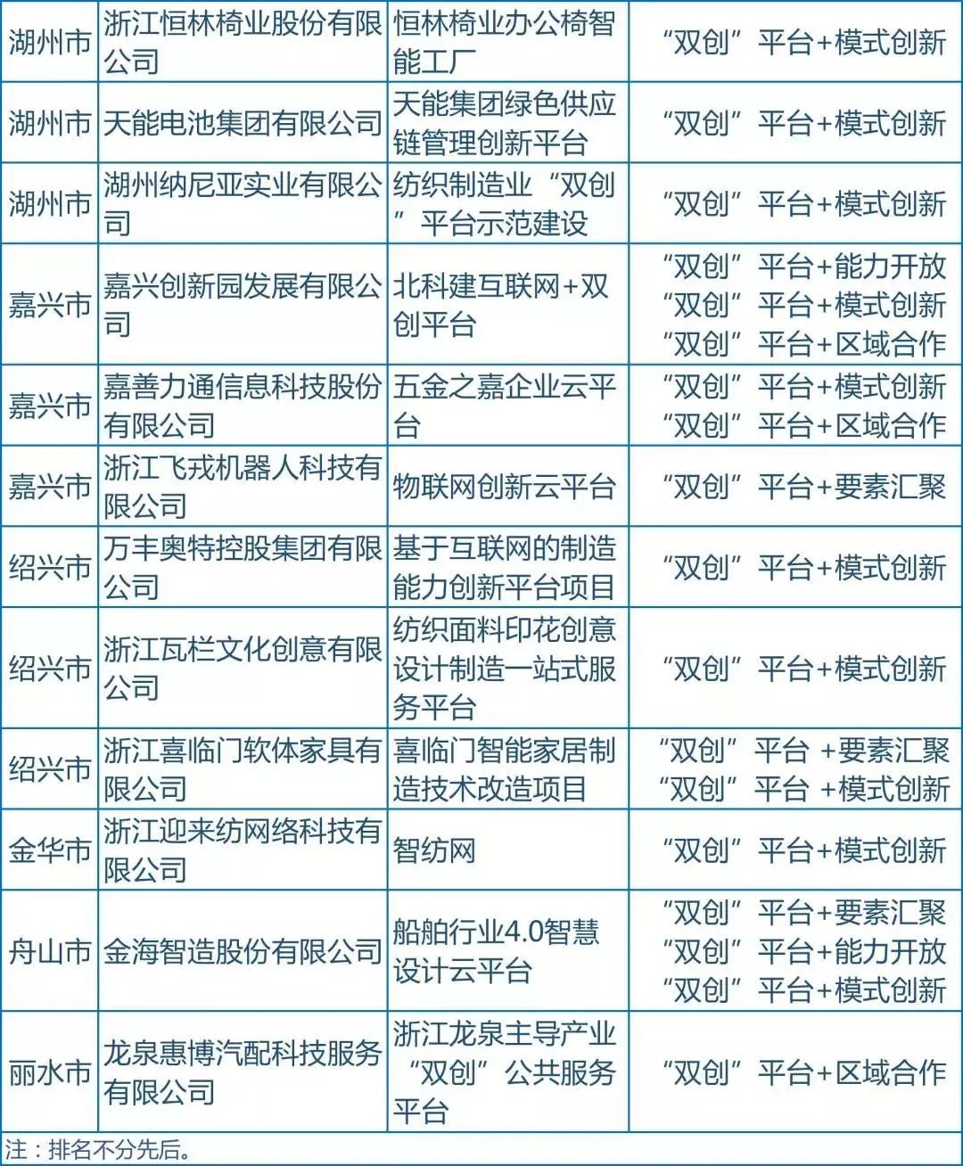 为贯彻落实《国务院关于深化制造业与互联网融合发展的指导意见》(国发〔2016〕28号)、《浙江省人民政府关于深化制造业与互联网融合发展的实施意见》(浙政发〔2017〕9号)文件精神,根据《工业和信息化部办公厅关于组织开展2018年制造业“双创”平台试点示范项目申报工作的通知》(工信厅信软函〔2018〕221号)和《关于组织开展2018年制造业“双创”平台试点示范项目申报工作的通知》(浙经信信息便函〔2018〕109号)的要求,在企业单位自愿申报、各市经信主管部门推荐、专家评审、实地调研等基础上,全省38家企业被评为“2018年省级制造业‘双创’平台试点示范企业”。威星智能的智慧生产基地“双创”平台成功入选。